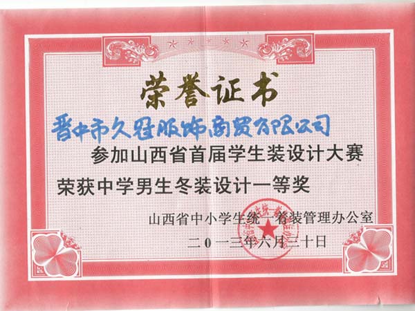 山西久冠服飾有限公司位于晉商故里山西省晉中市。公司注冊商標“久冠”,是山西省教育學會學生服被裝專業委員會會長單位,中國質量萬里行促進會理事單位,中國教育裝備行業協會學校后勤裝備管理分會常務理事單位。